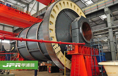 球磨機(jī)是由水平的筒體,進(jìn)出料空心軸及磨頭等部分組成,筒體為長(zhǎng)的圓筒,筒內(nèi)裝有研磨體,筒體為鋼板制造,有鋼制襯板與筒體固定,研磨體一般為鋼制圓球,并按不同直徑和一定比例裝入筒中,研磨體也可用鋼段。